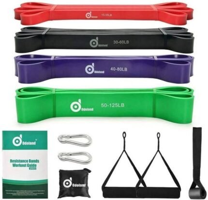 مجموعة حبال المقاومة ، للرجال والنساء، سهلة التخزين وتصل الي مقاومة حتي 150 باوند مناسبة للتمارين الداخلية او الخارجية، معها